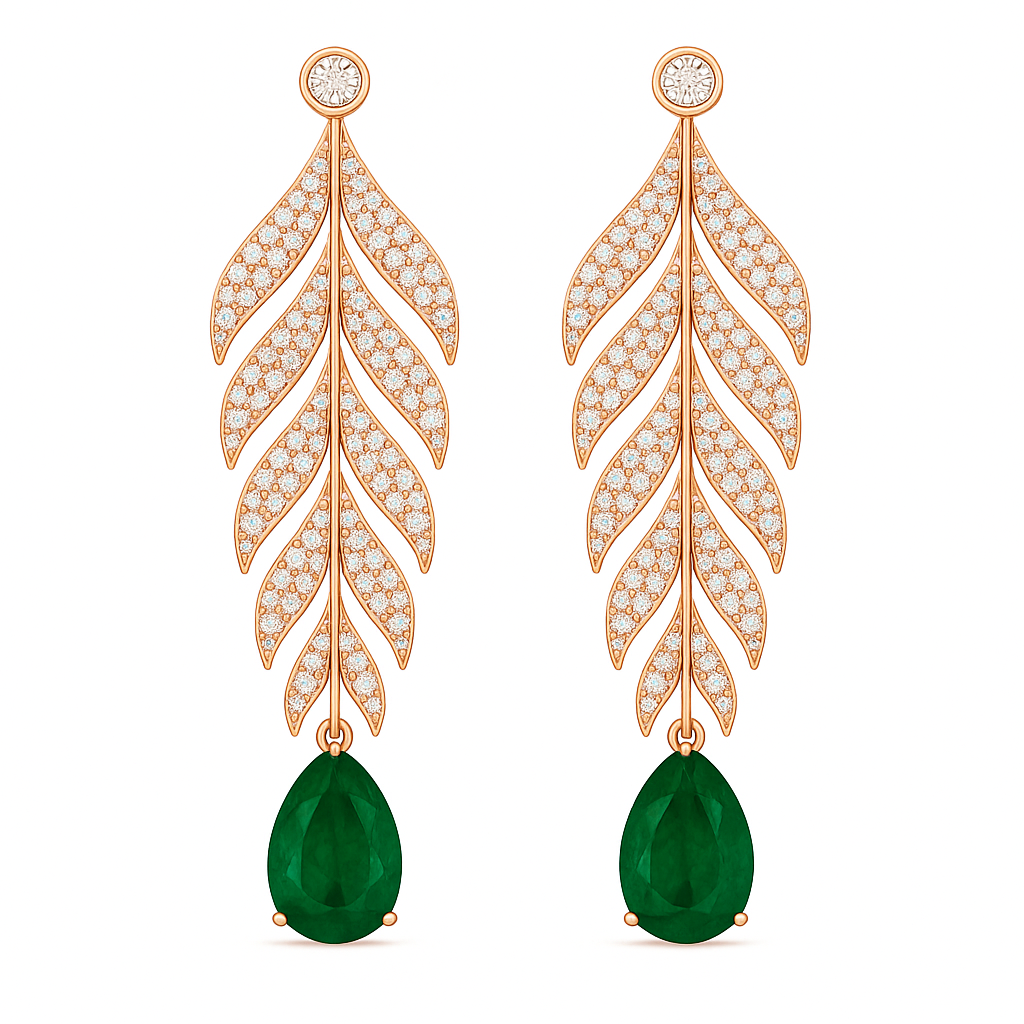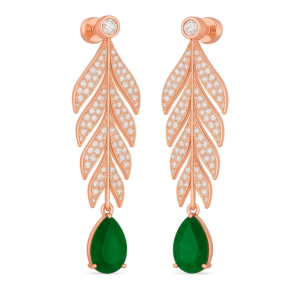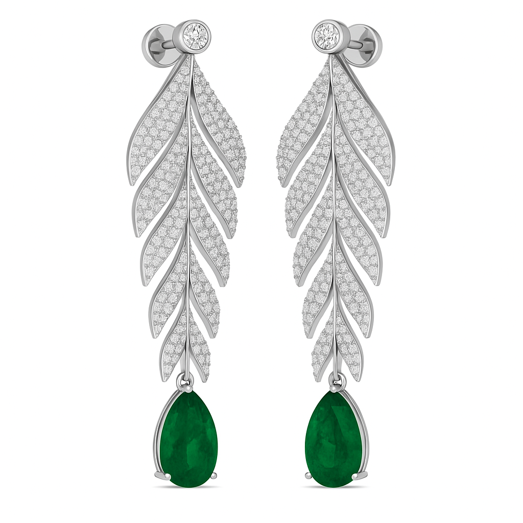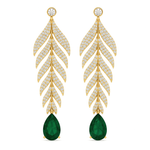 Make an unforgettable impression with these Regal Feather Earrings, a stunning blend of bold sophistication and timeless beauty. Featuring a total diamond weight of 3.79 carats, each earring showcases an exquisite cascading feather design, adorned with brilliant pavé-set diamonds, leading to a striking pear-cut ruby drop. The delicate movement and impeccable craftsmanship create a breathtaking interplay of light and color, making these earrings the perfect statement piece for high-end parties, celebrations, and grand occasions. Crafted in gold, they offer unparalleled brilliance, durability, and comfort, ensuring that you shine effortlessly in every moment.