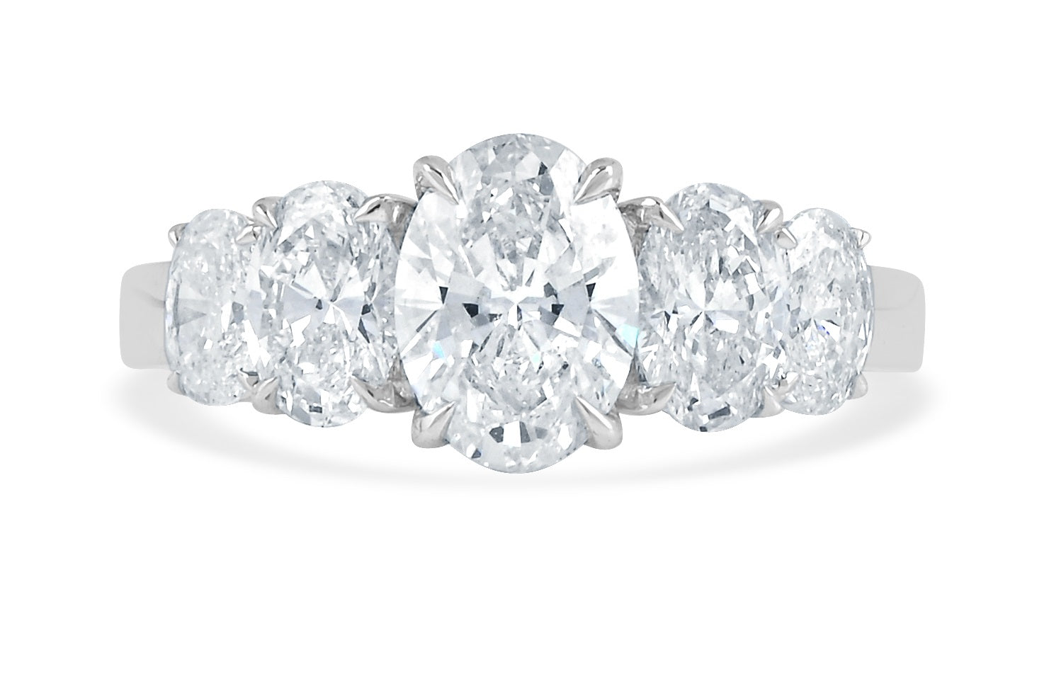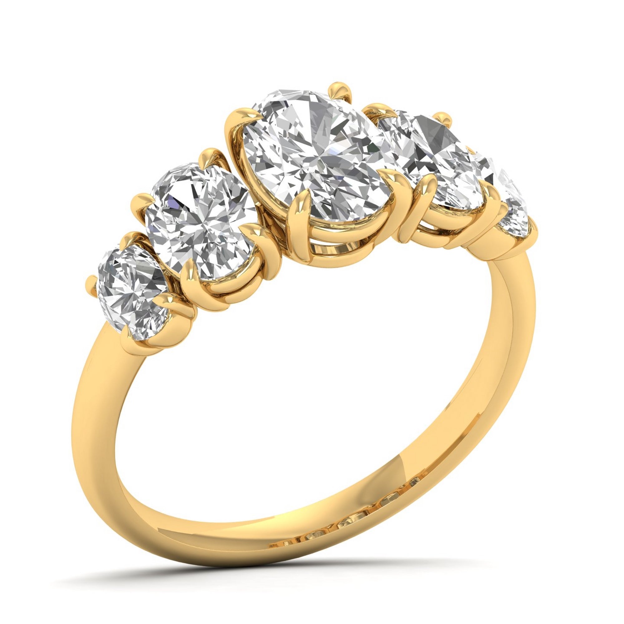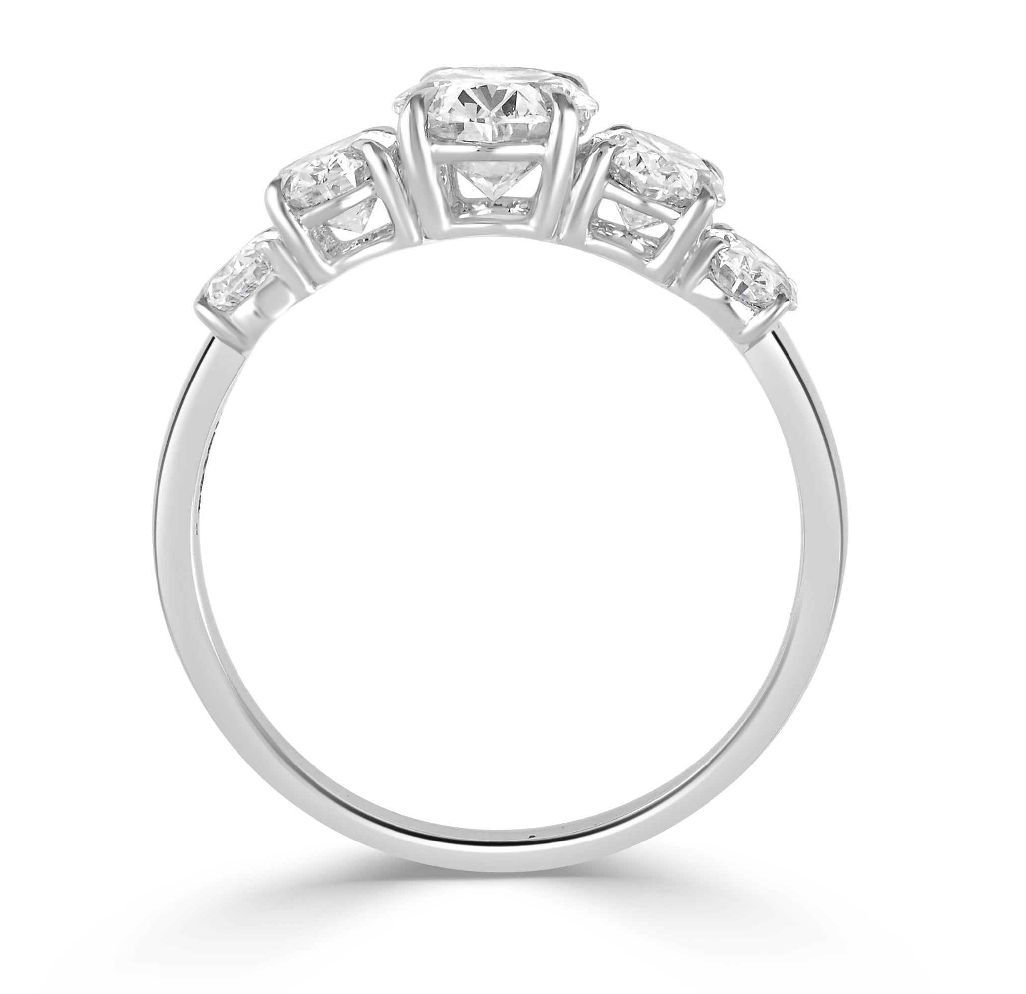 Radiating brilliance and balance, the Aurora Crest Ring features five beautifully matched oval-cut diamonds in a graduated layout, with a bold center stone that anchors the design. Set in polished 18K white gold or platinum, this ring offers a luxurious display of symmetry and sparkle—making it an eye-catching piece for both elegant occasions and everyday glamour. Perfect for marking milestones, celebrating love, or simply indulging in timeless luxury.