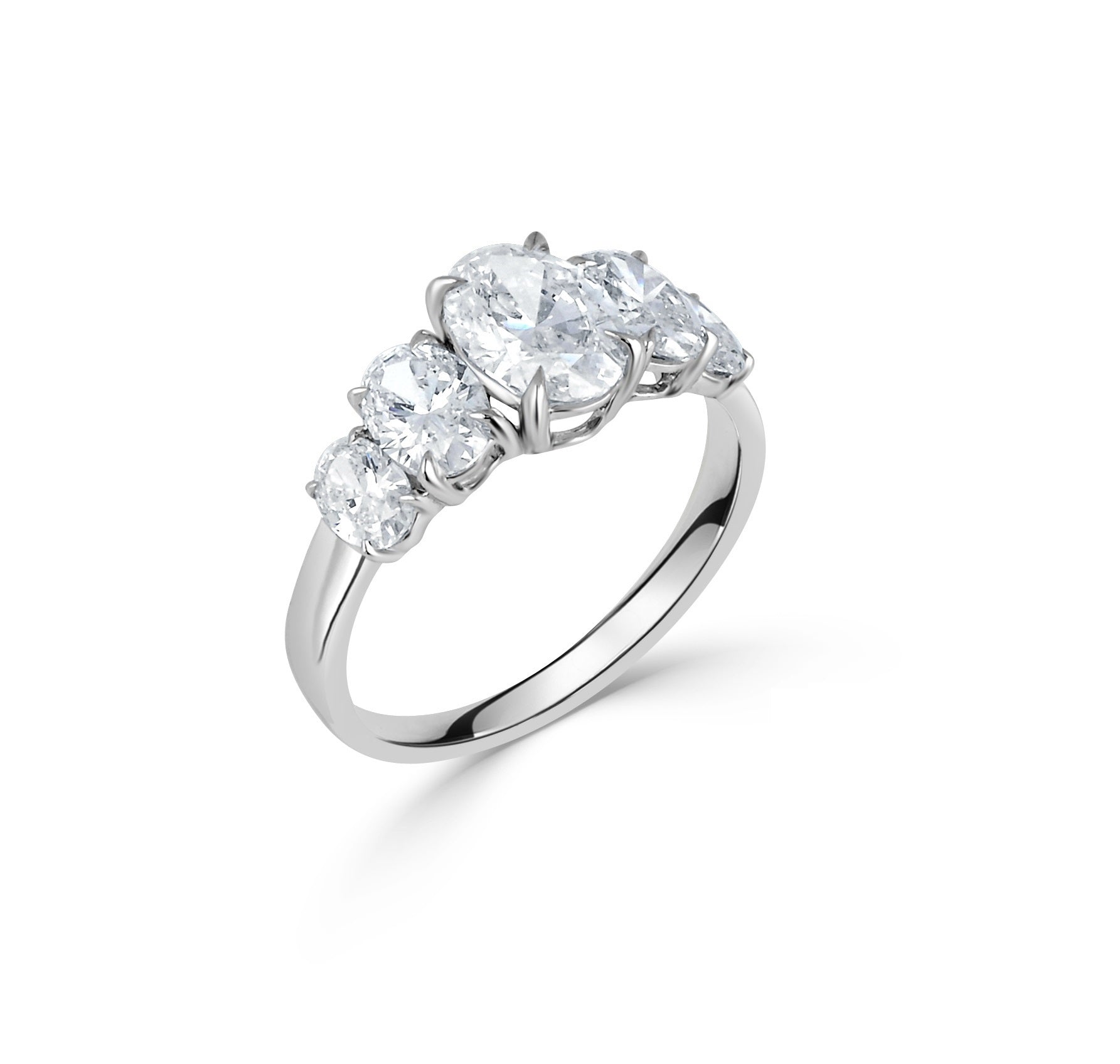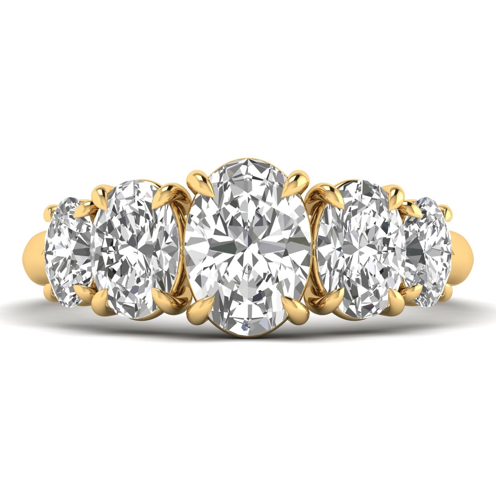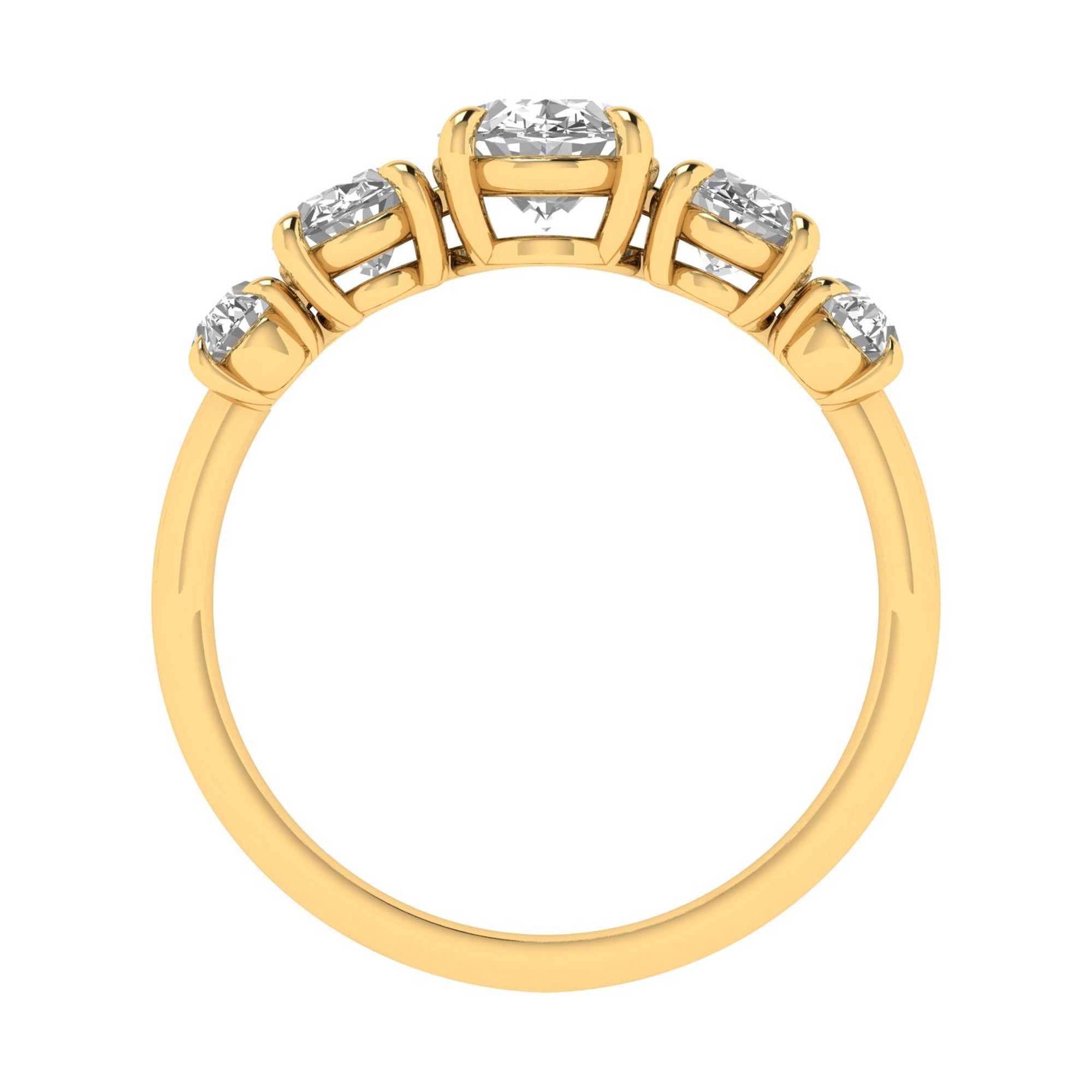 Radiating brilliance and balance, the Aurora Crest Ring features five beautifully matched oval-cut diamonds in a graduated layout, with a bold center stone that anchors the design. Set in polished 18K white gold or platinum, this ring offers a luxurious display of symmetry and sparkle—making it an eye-catching piece for both elegant occasions and everyday glamour. Perfect for marking milestones, celebrating love, or simply indulging in timeless luxury.