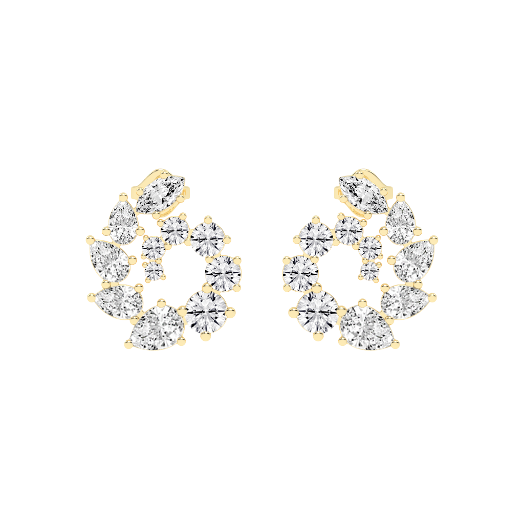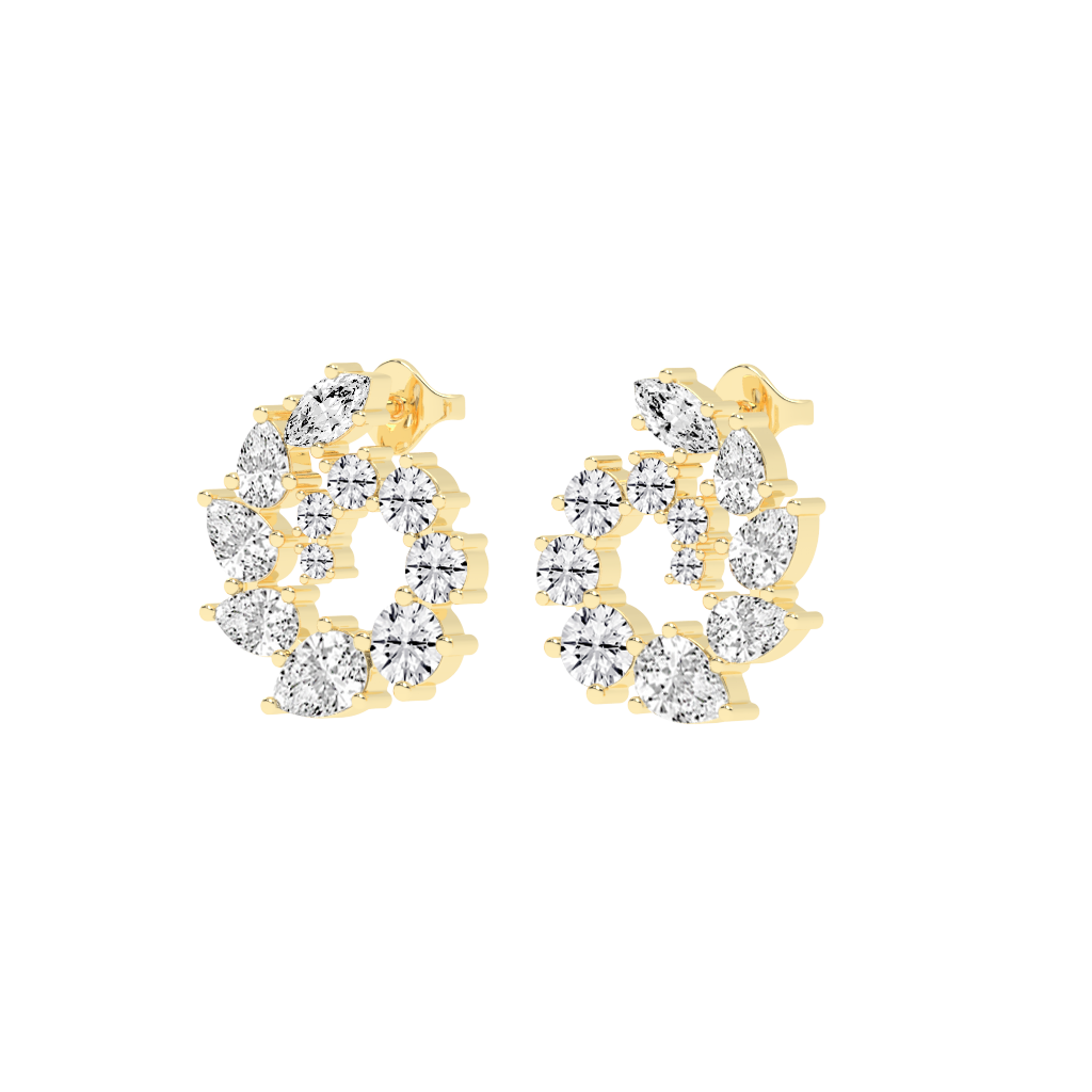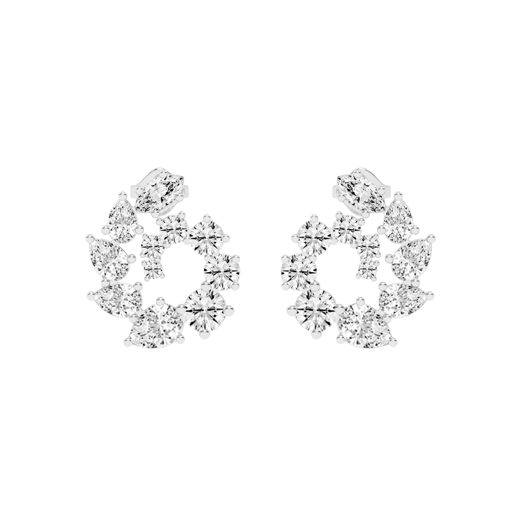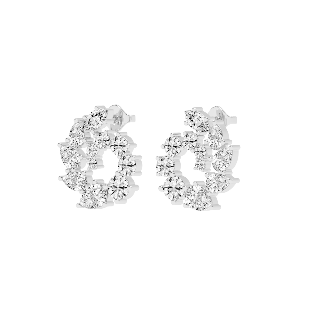 The Celina Halo Studs are a radiant expression of modern glamour and timeless beauty. Featuring a total diamond weight of 6.49 carats, these exquisite earrings are crafted in a unique crescent silhouette, combining round brilliant and pear-cut lab-grown diamonds in a striking cluster arrangement. Set in high-polish white gold, the airy, open-center design adds a touch of elegance and lightness, making them a versatile accessory for day-to-night wear. Whether worn solo or paired with other pieces, these studs exude brilliance, style, and refined charm.